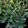 Un véritable arc-en-ciel ! Feuilles persistantes gris vert bordées de jaune avec les pointes souvent rouges. Fleurs jaune vert à glandes rouge sombre.