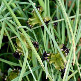 Vivace tubéreux, à racines charnues. Feuilles lancéolées, vertes caduques . Fleur brun noir.