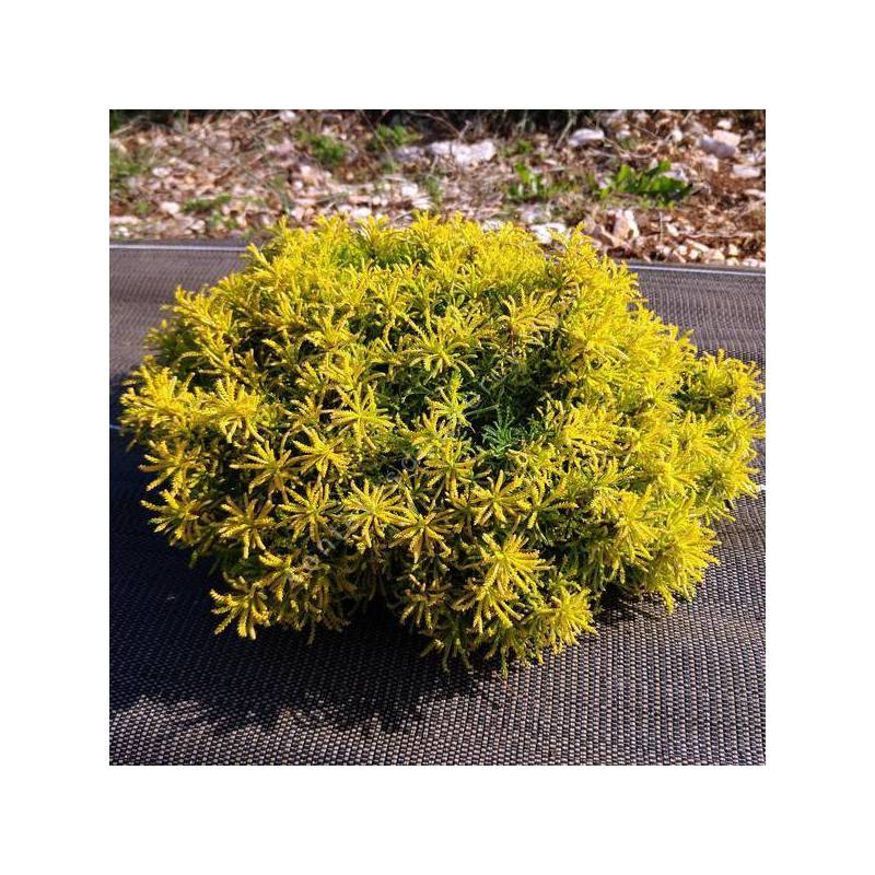 Les formes naines comme ‘Nana’ et les cultivars dorés (‘Lemon Fizz’) sont idéaux. Choisissez un contenant large, un substrat très drainant et un drainage impeccable.