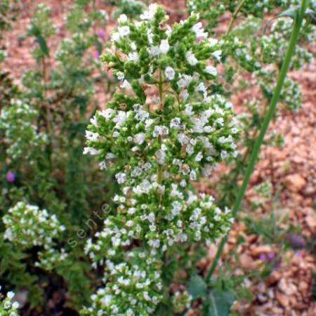 Les fleurs apparaissent à l'aisselle des feuilles de la fin du printemps à l'été, groupées vers le sommet des tiges. Elles peuvent être blanches, teintées de rose ou mauve. On les distingue des origans par leurs petites feuilles et par la forme irrégulière du calice, à la base des fleurs.